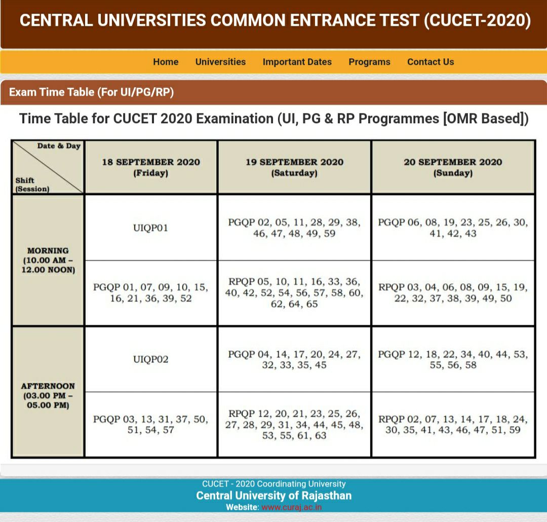 CUCET released their notifications for admission to academic session 2020-2021 to UG, PG and PhD Programs in Central Universities. Check here List of all participating Universities Registration Start: March 16, 2020 Last Date:May 23, 2020, Again Extended till June 06, 2020) Exam date:Mentioned below in Poster. Result date: Notify Later. Online Application:Apply here How to Apply: Click here For More Details: Visit here