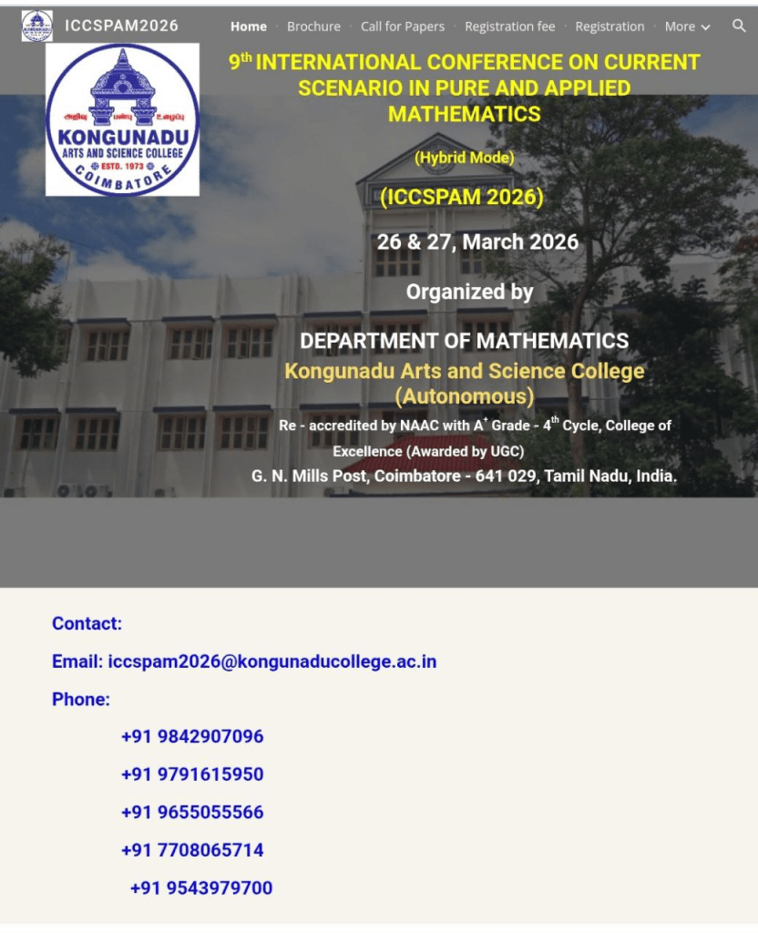 📤 Submit your paper (PDF): iccspam2026@kongunaducollege.ac.in
