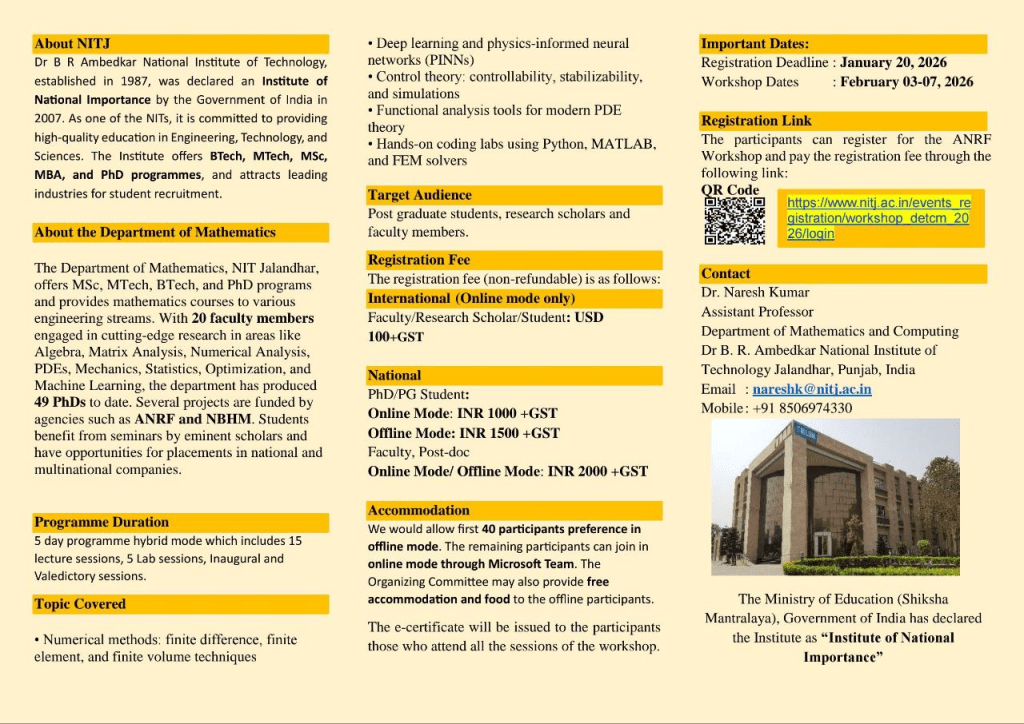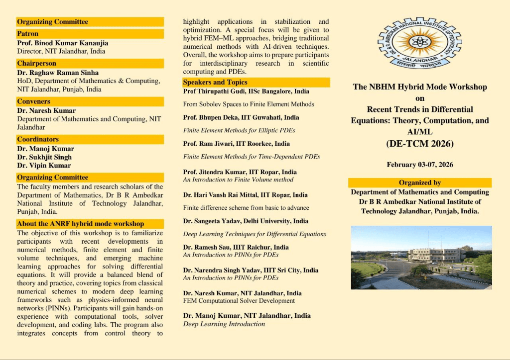 📌🆕🔜 A five-day workshop on Recent advances in Computataiona; Mathematics, ML and Emerging Applications on April 10 – 14, 2026