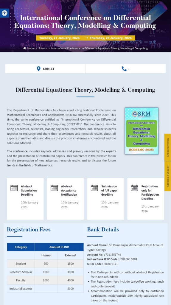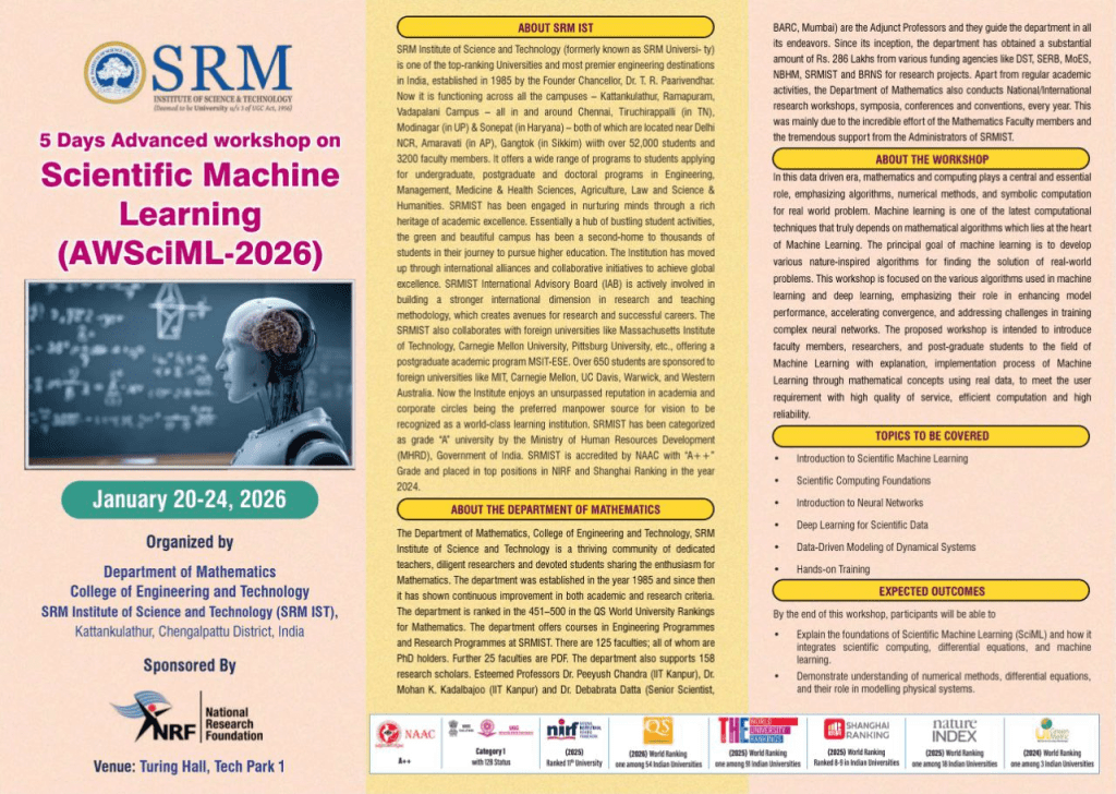 🔗 https://www.srmist.edu.in/events/5-days-advanced-workshop-on-scientific-machine-learning/